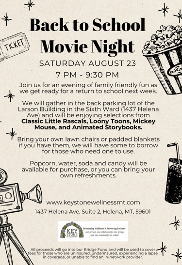 Gather with us to celebrate the end of summer and the return to routine as we have our own outdoor screening of a movie before we all head back to school later this week.
