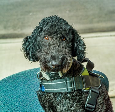 Chris supports clients in getting in touch with their thoughts and feelings through interventions ranging from mindfulness to narrative therapy and is always ready to try a new tool to help a client find joy in their journey. Max is a doodle puppy who is learning the ropes as a therapy dog. He can join you for your session or can be asked to sit somewhere else in the office and give you space.